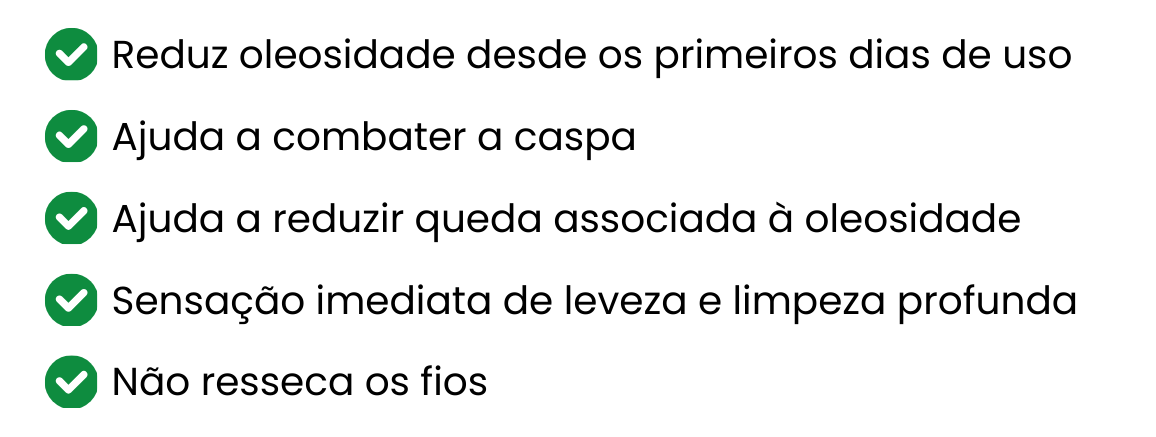 Limpeza profunda do couro cabeludo - menos oleosidade, menos caspa, alívio imediato.